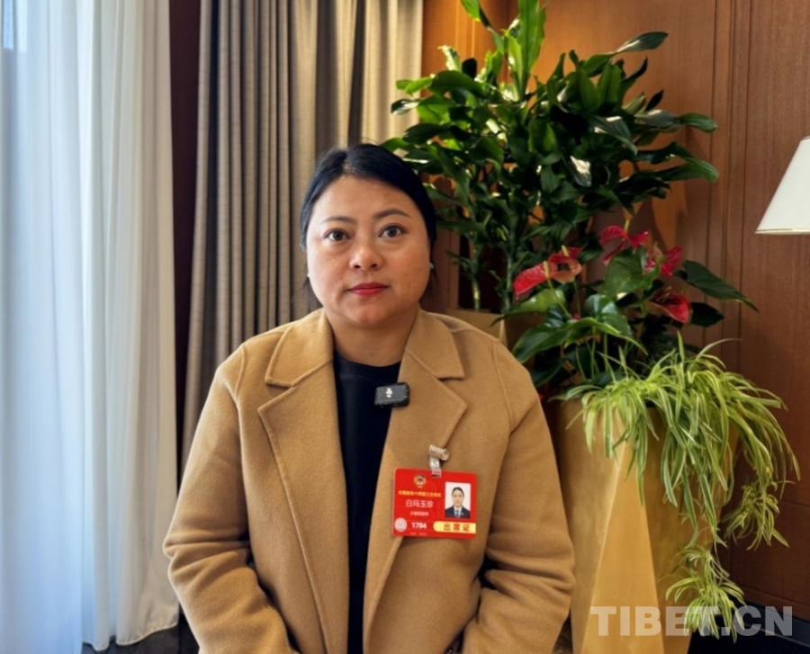 圖為兩會期間,白瑪玉珍接受中國西藏網記者采訪