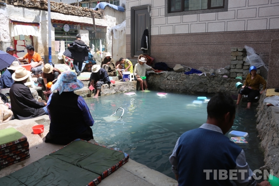 圖為從謝通門縣達那答鄉頂嘎村來泡溫泉的群眾