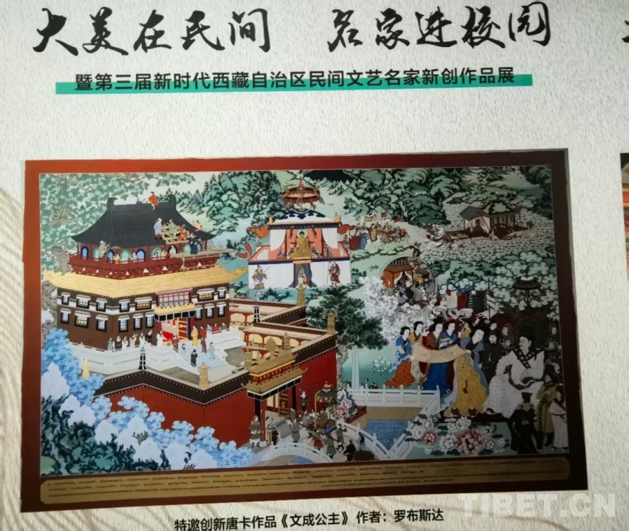 中國西藏網訊 韓書力、次仁平措、普布多吉、羅布斯達......一個個浸潤書香、渲染色彩的名字在“大美在民間——名家進校園暨第三屆新時代西藏自治區民間文藝名家新創作品展”上熠熠發光,展覽所在地西藏大學,師生們在展廳中流連駐足,認真觀展,不時交頭細語,分享感受。