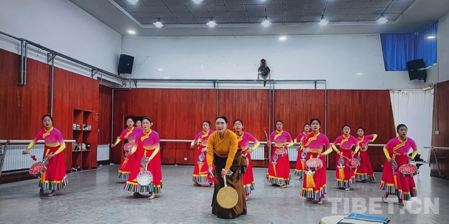 6月20日,“大美在民間——名家進校園暨第三屆新時代西藏自治區民間文藝名家新創作品展”開展。圖為西藏大學舞蹈教師教授西藏傳統舞蹈 翻拍:趙釗