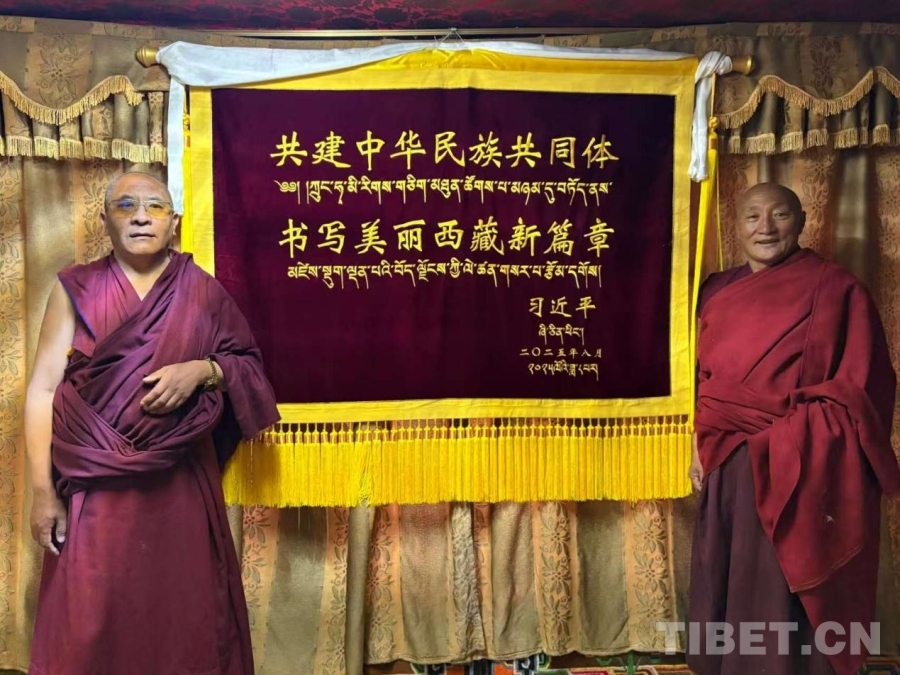 中央代表團(tuán)向孝登寺贈(zèng)送了習(xí)近平總書記題詞的“共建中華民族共同體 書寫美麗西藏新篇章”賀幛。土登對此深有感觸:“‘共建中華民族共同體’意味著56個(gè)民族共同致力于中華民族的偉大夢想;‘書寫美麗西藏新篇章’是指西藏從1965至今發(fā)生巨變,我們正在此基礎(chǔ)上創(chuàng)造更美好的未來。”