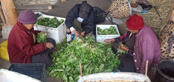 “年前灑下的種子,這幾天正是收獲的季節,在農貿市場里,本地小白菜都是以捆綁的把數售賣,一把可賣一元多錢,今天的兩背篼菜估計可以賣500多元,自己的一畝地15天可以賣完。”木朗格絨介紹說,雖然辛苦點,但收入還算不錯,每天賣菜回來還可以做其他農活。