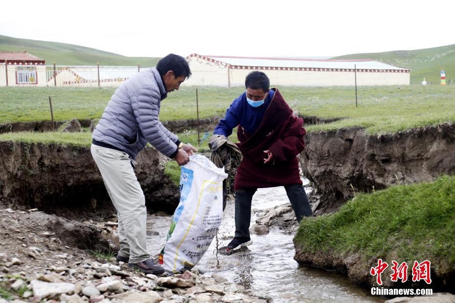 7月21日,青海省海北藏族自治州剛察縣伊克烏蘭鄉剛察貢麻村的吉科加(左)、索南木旦巴(右)兩人正在草場上的小河中撿拾垃圾。2008年,萬瑪扎西路在村支書的支持下,與索南木旦巴、仁增才讓、吉科加三個人組建了義務環保隊,自此一干就是12年。他們在撿拾垃圾的同時進行著環保宣傳,希望從源頭減少垃圾。仁增才讓說:“現在草原上的垃圾幾乎是看不到了。”中新社記者 馬銘言 攝