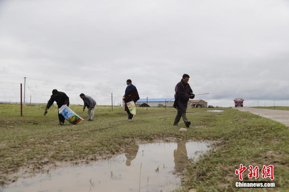 7月21日,青海省海北藏族自治州剛察縣伊克烏蘭鄉剛察貢麻村的萬瑪扎西、索南木旦巴、仁增才讓、吉科加四人在撿拾著草場垃圾。2008年,萬瑪扎西路在村支書的支持下,與索南木旦巴、仁增才讓、吉科加三個人組建了義務環保隊,自此一干就是12年。他們在撿拾垃圾的同時進行著環保宣傳,希望從源頭減少垃圾。仁增才讓說:“現在草原上的垃圾幾乎是看不到了。”中新社記者 馬銘言 攝