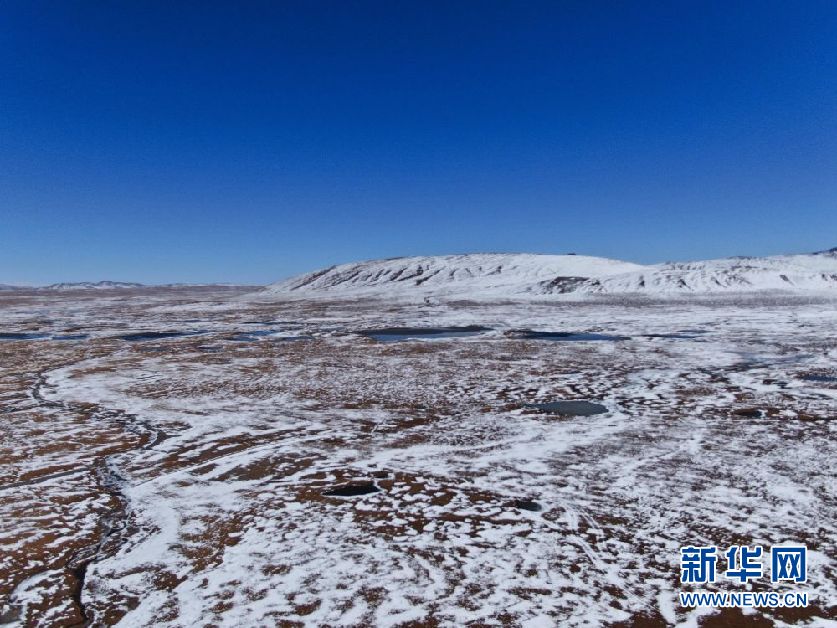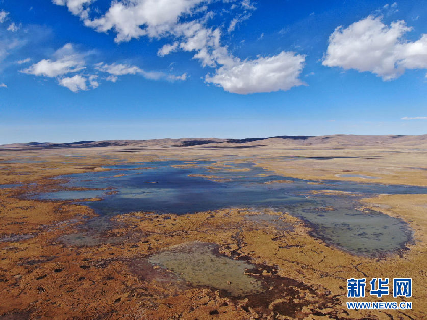 10月30日在青海省果洛藏族自治州瑪多縣境內拍攝的一處濕地(無人機照片)。新華社記者 張龍 攝