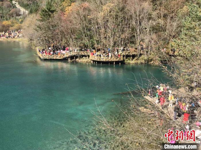 九寨溝景區(qū)游人如織。岳依桐 攝