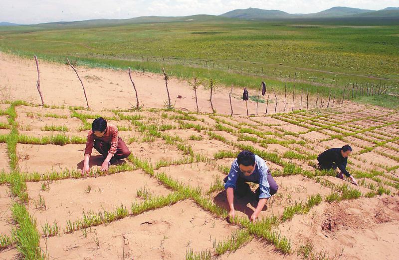 2007年4月8日,當地群眾在若爾蓋縣麥溪鄉和轄曼鎮實施防沙治沙項目。尹鋼 攝