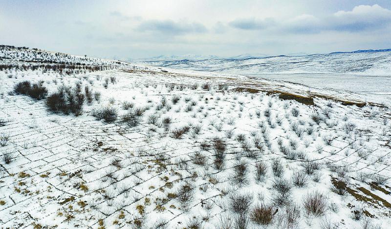 2021年3月6日拍攝的若爾蓋縣麥溪鄉和轄曼鎮實施防沙治沙項目。該項目取得良好效果,高原紅柳覆蓋沙化面積達85%以上。尹鋼 攝