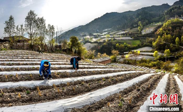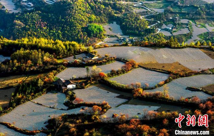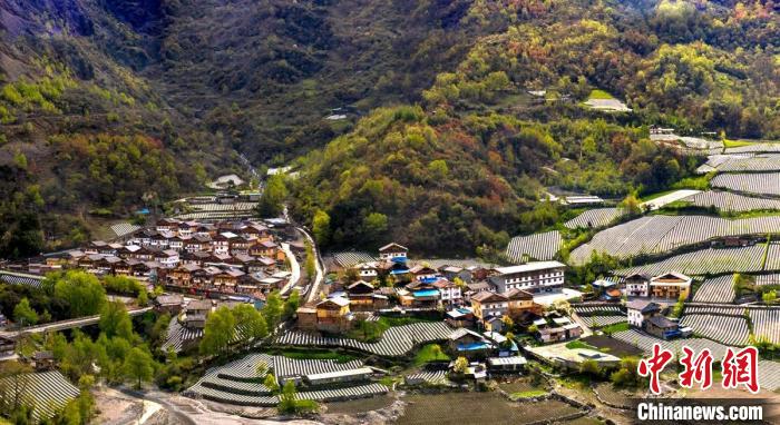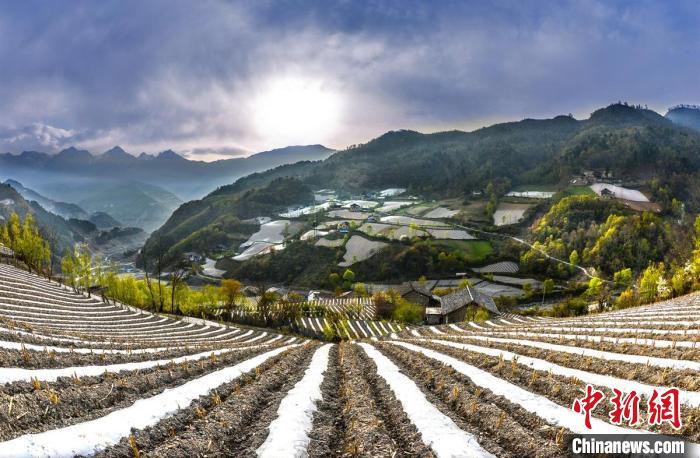 4月的四川雅安市寶興縣磽磧藏族鄉(xiāng),山坡上整齊有序的地膜,錯(cuò)落有致鋪在藏寨林間,構(gòu)成了一幅田園山水與天人合一的自然畫卷。