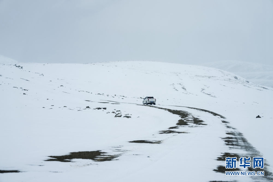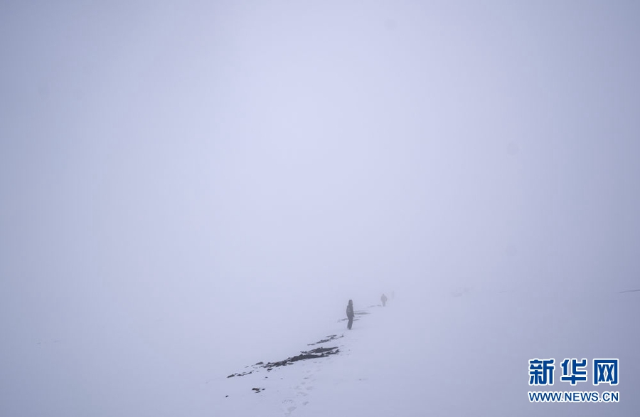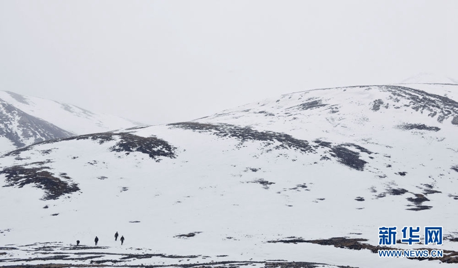 4月23日,祁連山國家公園沙龍灘管護站的生態管護員冒雪徒步巡護。新華社記者 費茂華 攝