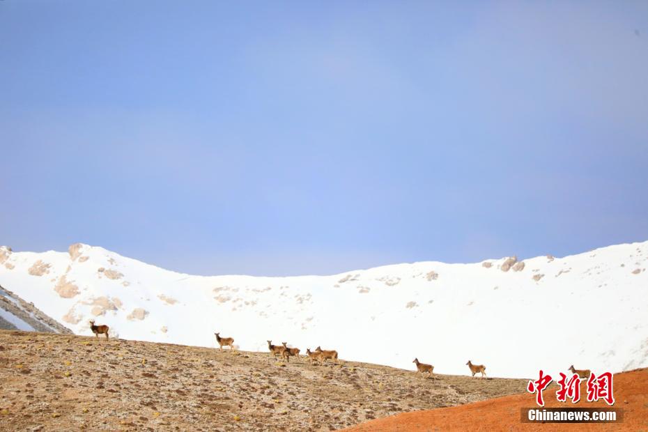 近日,甘肅張掖市祁連山國家公園內野生動物“組團”出沒的難得一見畫面。郎文瑞 攝