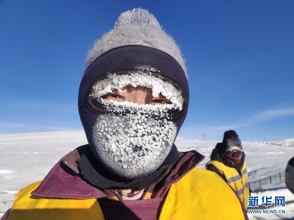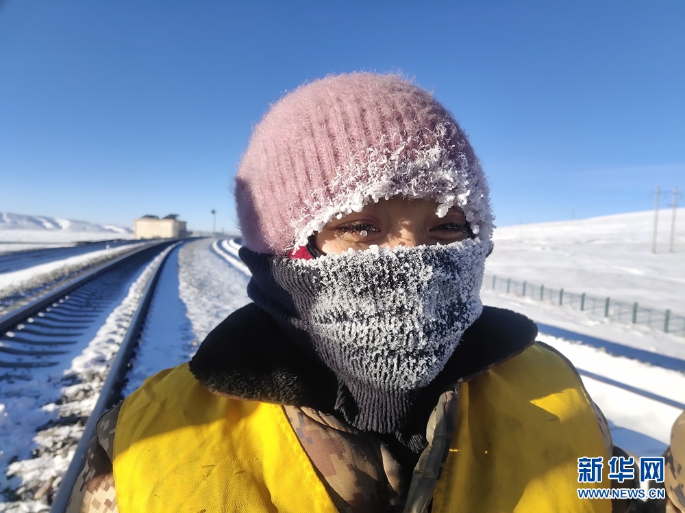 一天的工作結(jié)束后,她們的帽子、脖套上已布滿厚厚的冰霜。圖為中國(guó)鐵路青藏集團(tuán)公司格爾木工務(wù)段職工才仁文毛。