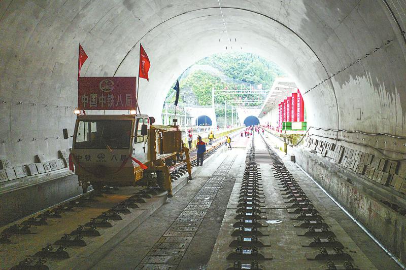 躍龍門隧道鋪軌現場。 成蘭鐵路公司供圖