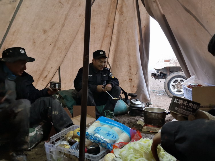 頻繁出現的陷車讓巡山的路途充滿了不確定,“有時候帶了10天的干糧,路上遇上雨天,一走就是半個月。”尼瑪扎西曾有過這樣的經歷,到最后餓得實在受不了,他撿來高原上的野牦牛糞,用紙卷起來,點著了當煙抽。嗆人的煙霧入肺,感到陣陣惡心,“這會讓人有一種飽腹的錯覺。”