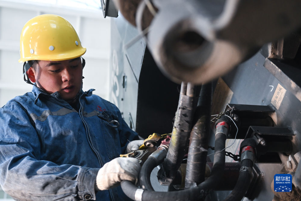2月4日,在格爾木機務(wù)段檢修車間,馬國仁在檢修機車。新華社記者 張龍 攝