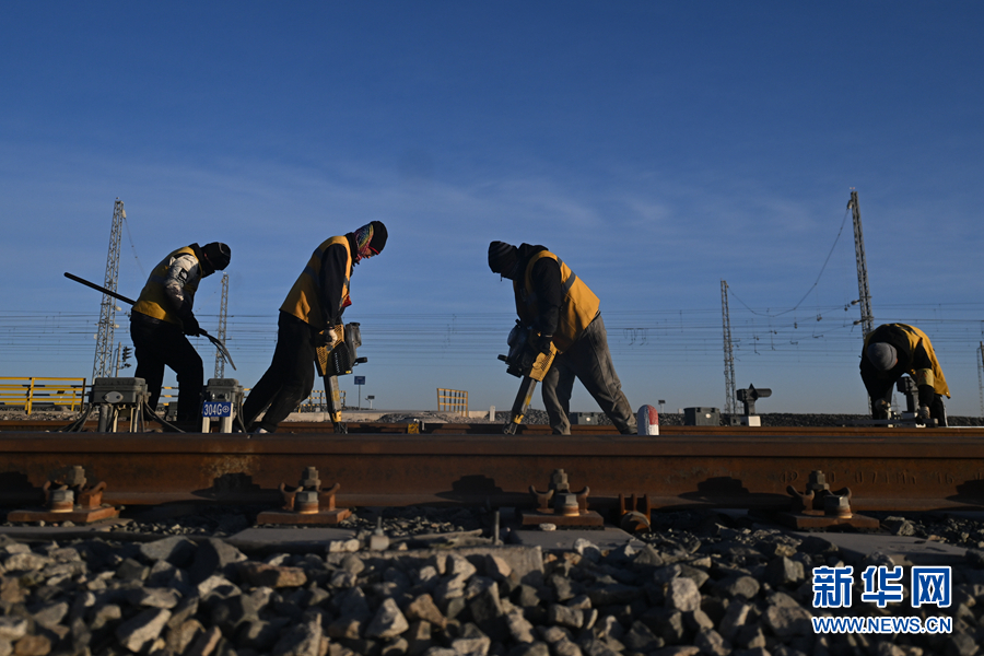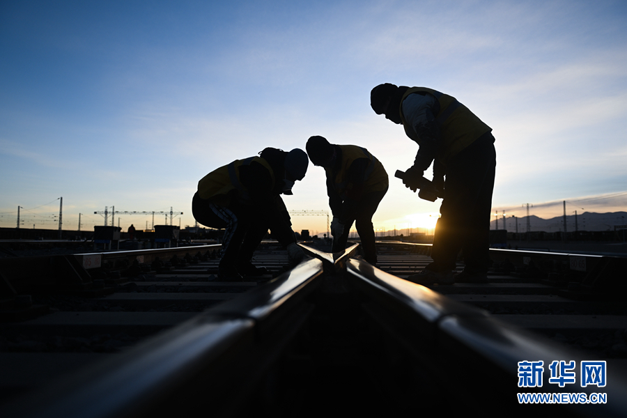 2月7日,中國鐵路青藏集團有限公司格爾木工務段格南線路工區的職工在格爾木南站施工。新華社記者 張龍 攝