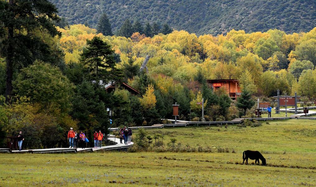 游人在云南迪慶州普達措景區里游覽。新華社記者 藺以光 攝