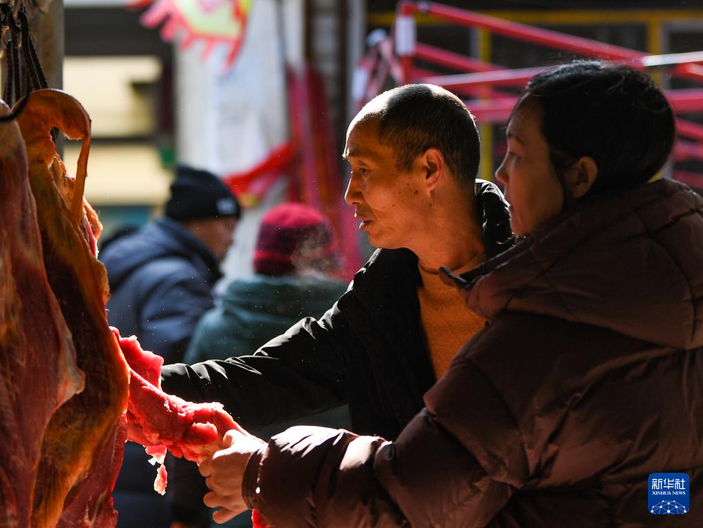 1月28日,游客在四川阿壩藏族羌族自治州茂縣農貿市場選購牦牛肉。新華社記者 王曦 攝