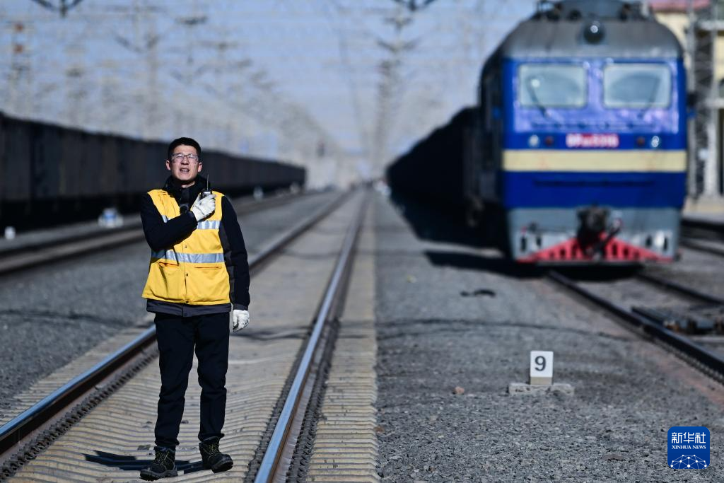 1月29日,格爾木電務段格爾木東信號車間察爾汗信號工區副工長張世鐸在指揮調整信號機顯示。新華社記者 張龍 攝