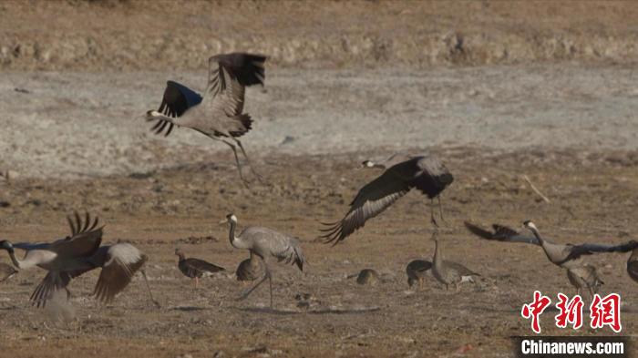 珍稀鳥類黑頸鶴、灰鶴現身青海格爾木