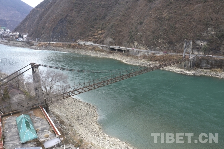 素有“甘孜東大門”之稱的四川省甘孜藏族自治州瀘定縣是長征精神和“兩路”精神的重要交匯地,在距離名揚中外的瀘定橋大約500米的地方,坐落著川藏公路上第一座鋼架索橋——大渡河橋。
