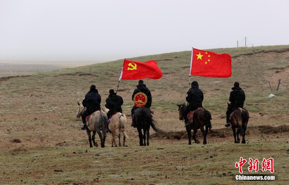 6月3日,在青海省果洛藏族自治州瑪多縣花石峽鎮,瑪多縣人民法院“馬背法庭”的法官頂風前往牧民家中進行訴前調解。薛蒂 攝