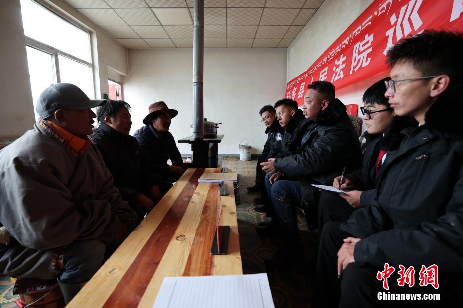 6月3日,在青海省果洛藏族自治州瑪多縣花石峽鎮,瑪多縣人民法院“馬背法庭”的法官在牧民家中完成訴前調解。薛蒂 攝