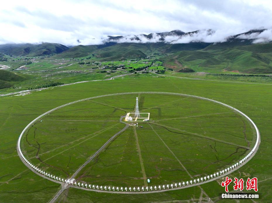 7月22日,四川稻城縣,草原上有序排列的天線。中新社記者 劉忠俊 攝