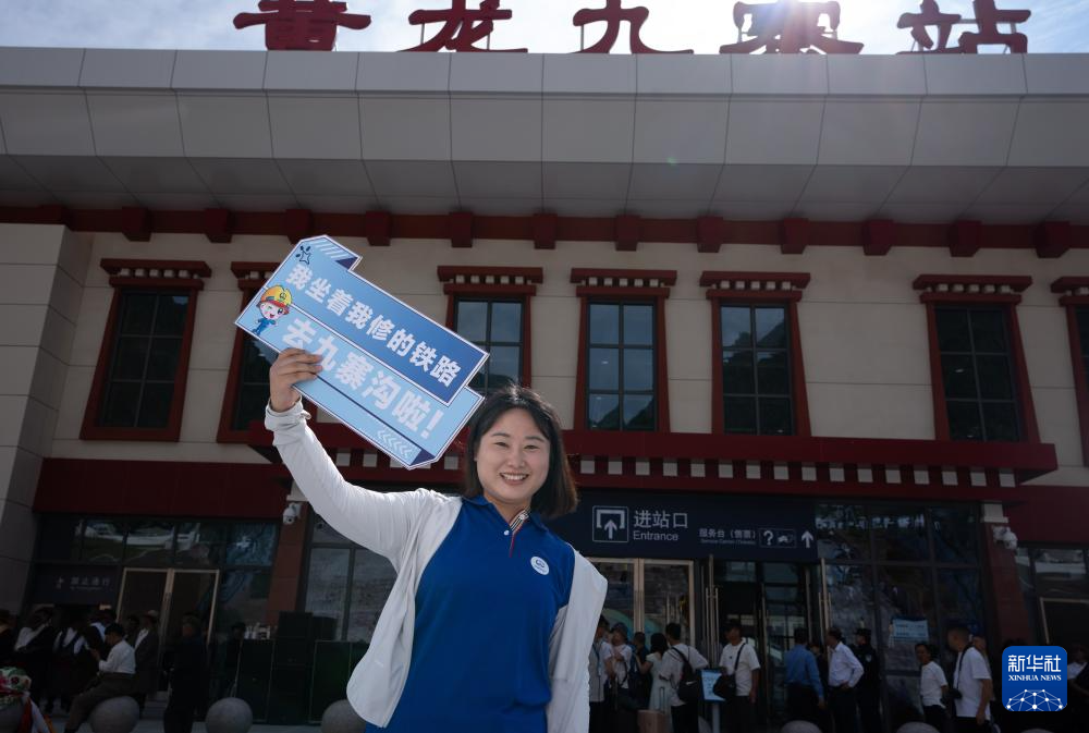 8月30日,在黃龍九寨站,當地群眾慶祝川青鐵路鎮江關至黃勝關段開通。新華社記者 江宏景 攝