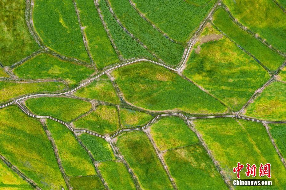 圖為7月28日,航拍洛隆縣優質青稞生產基地。中新社記者 何蓬磊 攝