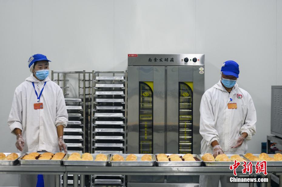 圖為7月28日,洛隆洛宗特色產品開發公司工人制作青稞面包。中新社記者 何蓬磊 攝