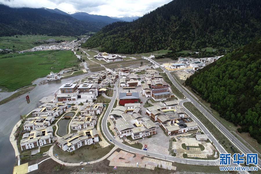 這是川藏公路旁的魯朗國際旅游小鎮(2019年5月28日攝,無人機照片)。 新華社記者 李鑫 攝