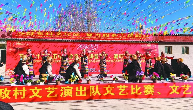 圖為瓊結縣下水鄉各行政村文藝演出隊演職人員在組織開展春節、藏歷新年文藝演出活動。