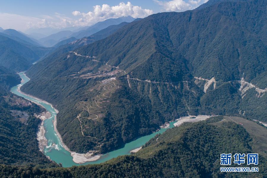 西藏林芝市墨脫縣德興鄉巴登則村位于雅魯藏布江邊的一座山上(2月9日攝,無人機照片)。新華社記者 孫非 攝