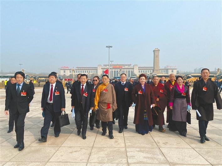 圖為西藏全國政協委員步入會場。記者 李洲 特約記者 旦增赤列 攝