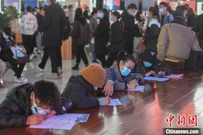 求職者在招聘會上填寫個人信息。貢嘎來松 攝