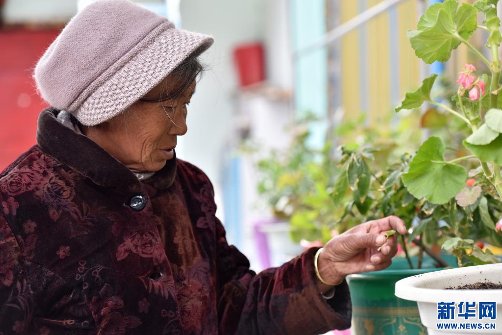 德慶卓瑪在山南市乃東區克松社區的家里照看花草(3月15日攝)。新華社記者 孫瑞博 攝