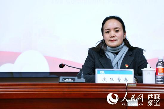 西藏自治區圖書館館長次旦普赤講話。人民網 李海霞攝