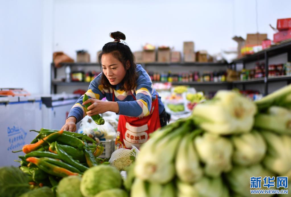 在西藏丁青縣尺牘鎮(zhèn)農(nóng)貿(mào)市場,商販在整理蔬菜(2020年9月18日攝)。 新華社記者 詹彥 攝