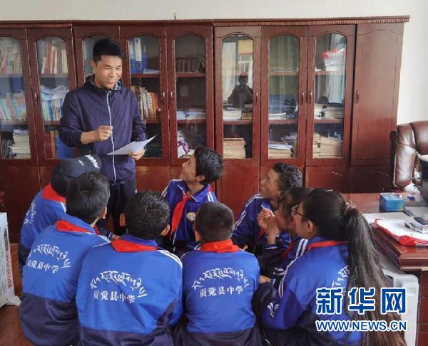 2019年,“80后”青年英語教師、天津市寧河區寧河鎮中學德育主任陳洪順來到當時仍是深度貧困縣的西藏自治區昌都市貢覺縣。從渤海灣畔到雪域之巔,陳洪順用大手牽住孩子們的小手,用奉獻與堅守唱響了知識扶貧的“青春之歌”。