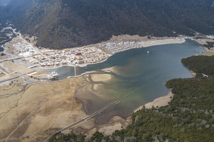 這是川藏公路旁的魯朗國際旅游小鎮風光(4月2日攝,無人機照片)。新華社記者 孫非 攝