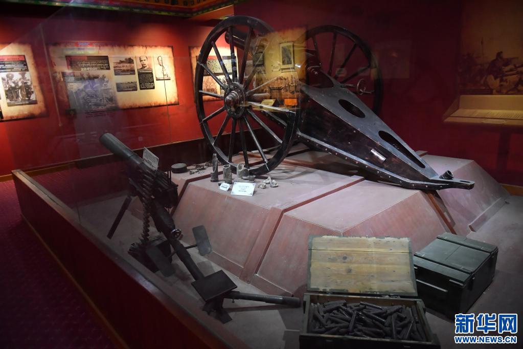 這是5月10日在江孜抗英紀念館拍攝的英軍侵略西藏時使用的大炮和機槍。新華社記者 孫瑞博 攝