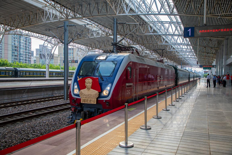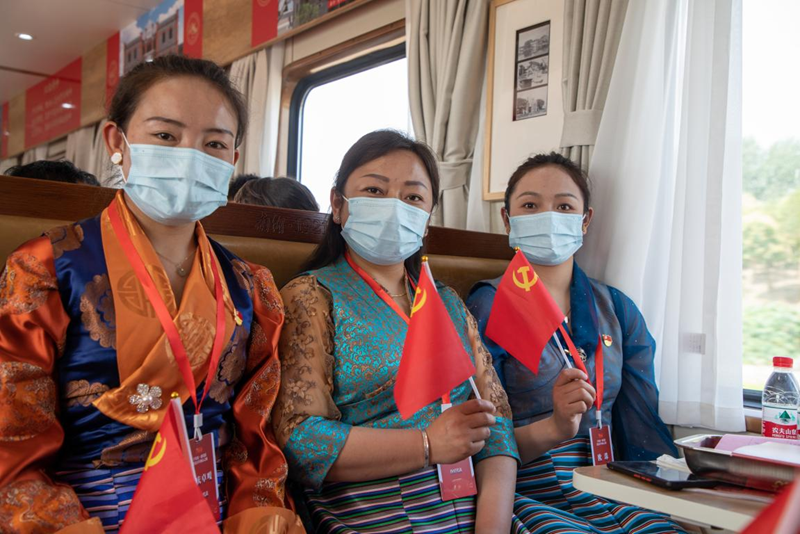 6月25日上午,上海至嘉興的“南湖·1921”紅色旅游列車正式開通。上午8時,身著藏裝的西藏自治區那曲市色尼區代表團乘上列車前往嘉興。