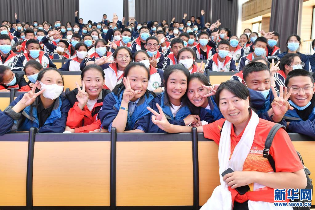 當日,高敏攜西藏和平解放以來首個競技體育世界冠軍、摔跤運動員西洛卓瑪和成功登頂七大洲最高峰并徒步到達南北極點的西藏登山運動員德慶歐珠走進拉薩市阿里高級中學。該校在校學生均來自距拉薩超過1000公里的阿里地區。由于當地氣候條件惡劣,交通不便,學校遷往拉薩,讓許多高海拔偏遠地區的學生享受到了更優質的教育條件。