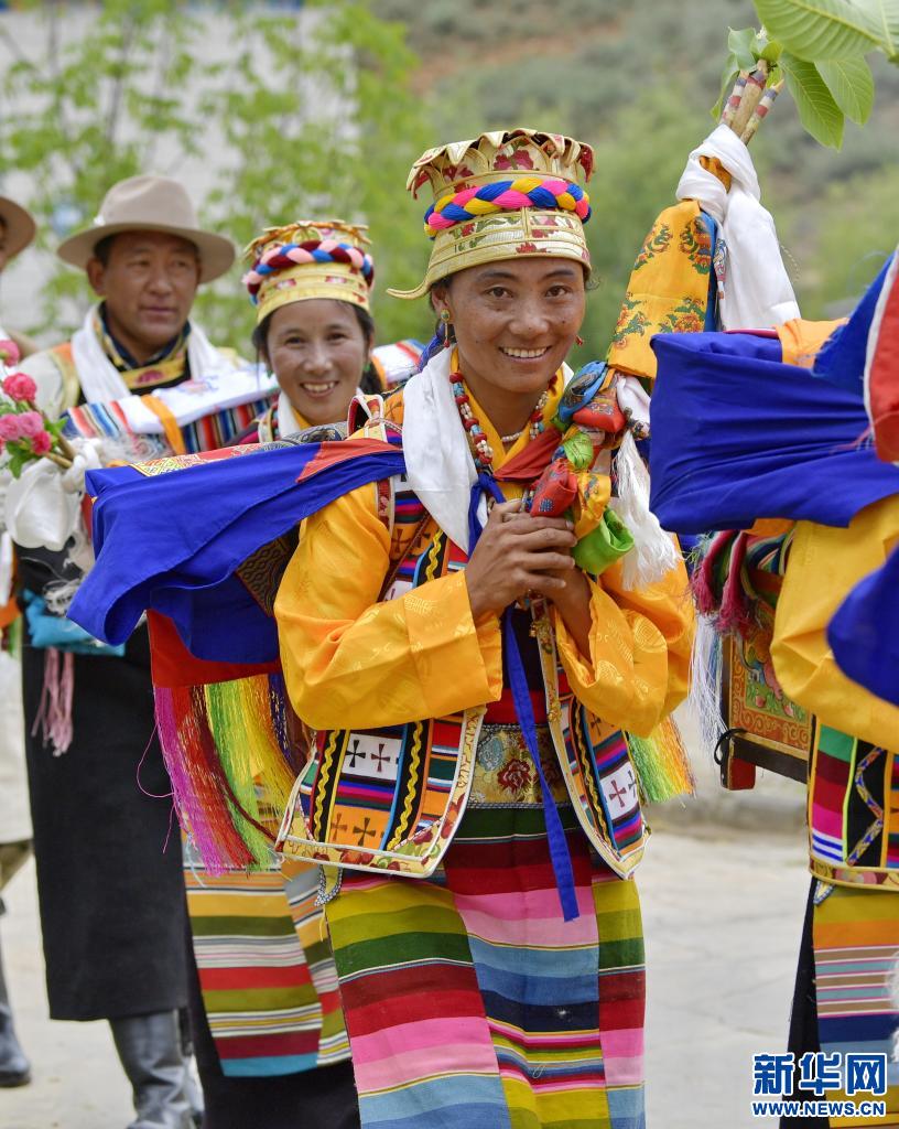 當日,易地扶貧搬遷新村——西藏山南市加查縣冷達鄉共康村的村民們身著盛裝歡度“望果節”。“望果節”是西藏農區在青稞麥田成熟之際祈求豐收的節日,據傳有1500多年的歷史,因各地青稞成熟時間不一,“望果節”時間也各異。