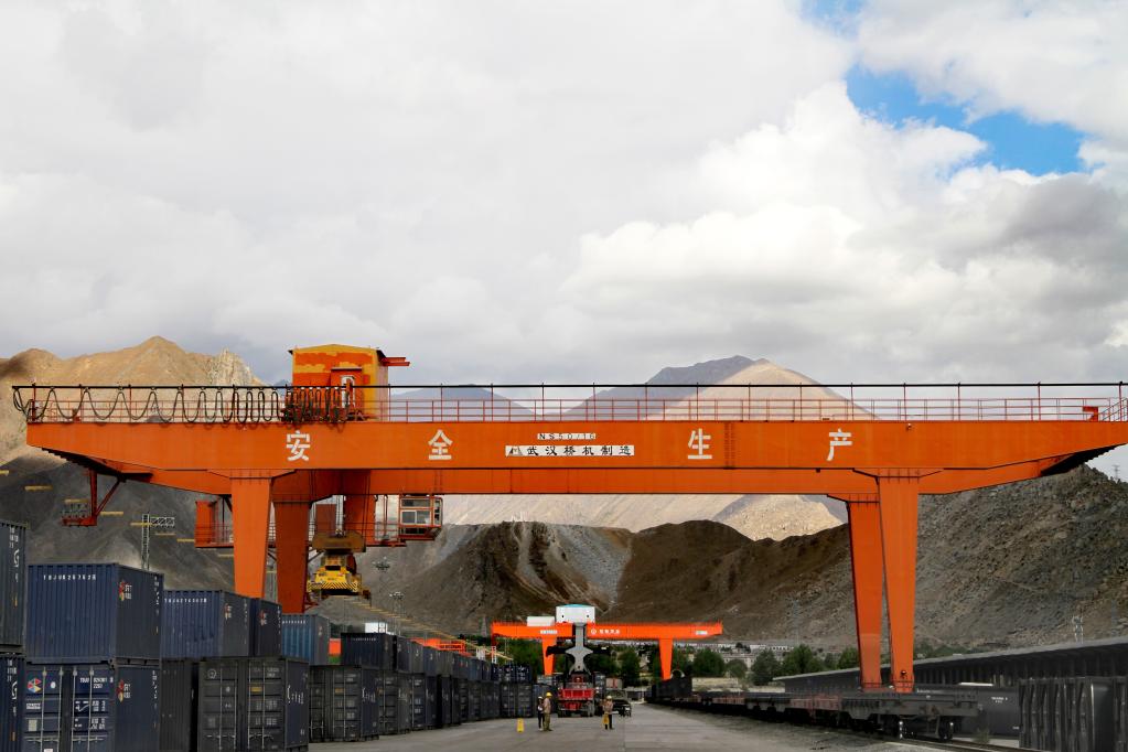 位于拉薩市堆龍德慶區乃瓊鎮的拉薩西站貨場(2021年7月29日)。新華社發(孫呈統 攝)