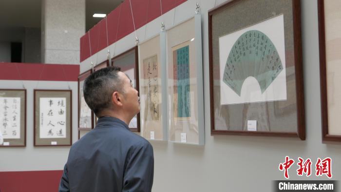 圖為市民在展廳內觀看書法作品。 謝牧 攝