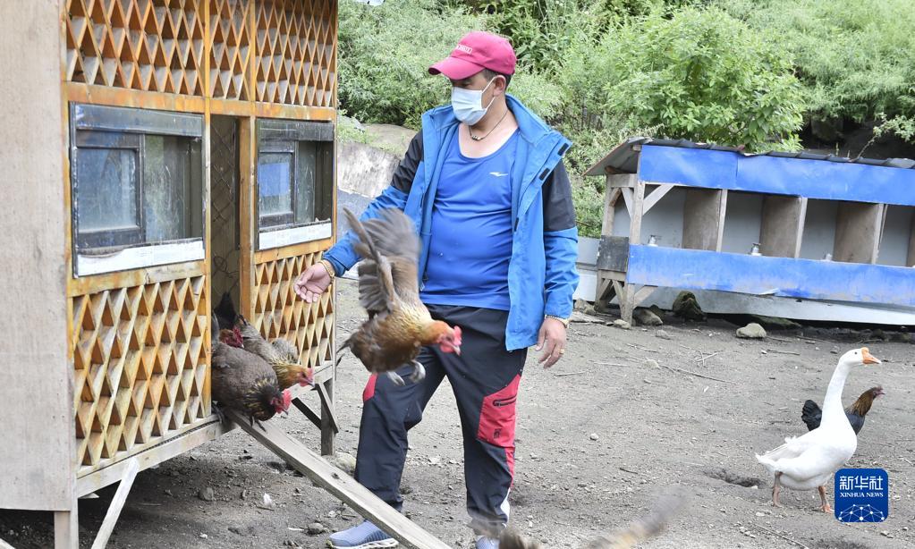 9月15日,西藏定結縣陳塘鎮養雞場負責人拉巴塔杰在放養藏雞。新華社發(索朗羅布 攝)
