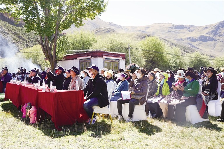 啟動儀式結束后,還舉辦了第六屆覺木隆派藏戲文化旅游節,邀請堆龍德慶區10支覺木隆藏戲表演隊表演特色劇目并為他們授牌。堆龍德慶區委常委、宣傳部部長楊麗表示,本屆藏戲文化旅游節,廣發“藏戲達人召集令”,邀請各派系、各唱腔達人表演特色劇目選段、共話藏戲,就是希望通過共建文化陣地、共享文化資源、共辦文化活動的形式,凝聚合力,充分彰顯藏戲文化魅力,弘揚優秀傳統民族文化,保護和傳承藏戲文化遺產,推動藏戲文化深度發展?!昂軜s幸能參加此次活動,那嘎藏戲團于1978年成立,那年我13歲,藏戲團剛成立我就加入了,因為我十分喜歡藏戲,希望自己能將這種傳統藝術傳承下去?!苯衲?6歲的安多說。