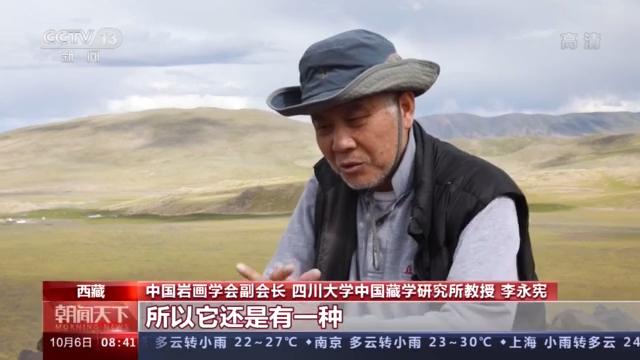 中國巖畫學會副會長、四川大學中國藏學研究所教授 李永憲:它面對這個湖泊非常開闊,然后背靠高山,所以它還是有一種就是我們藏北游牧部落比較傳統的一個領地意識,在巖石上留下我們特有的印記。